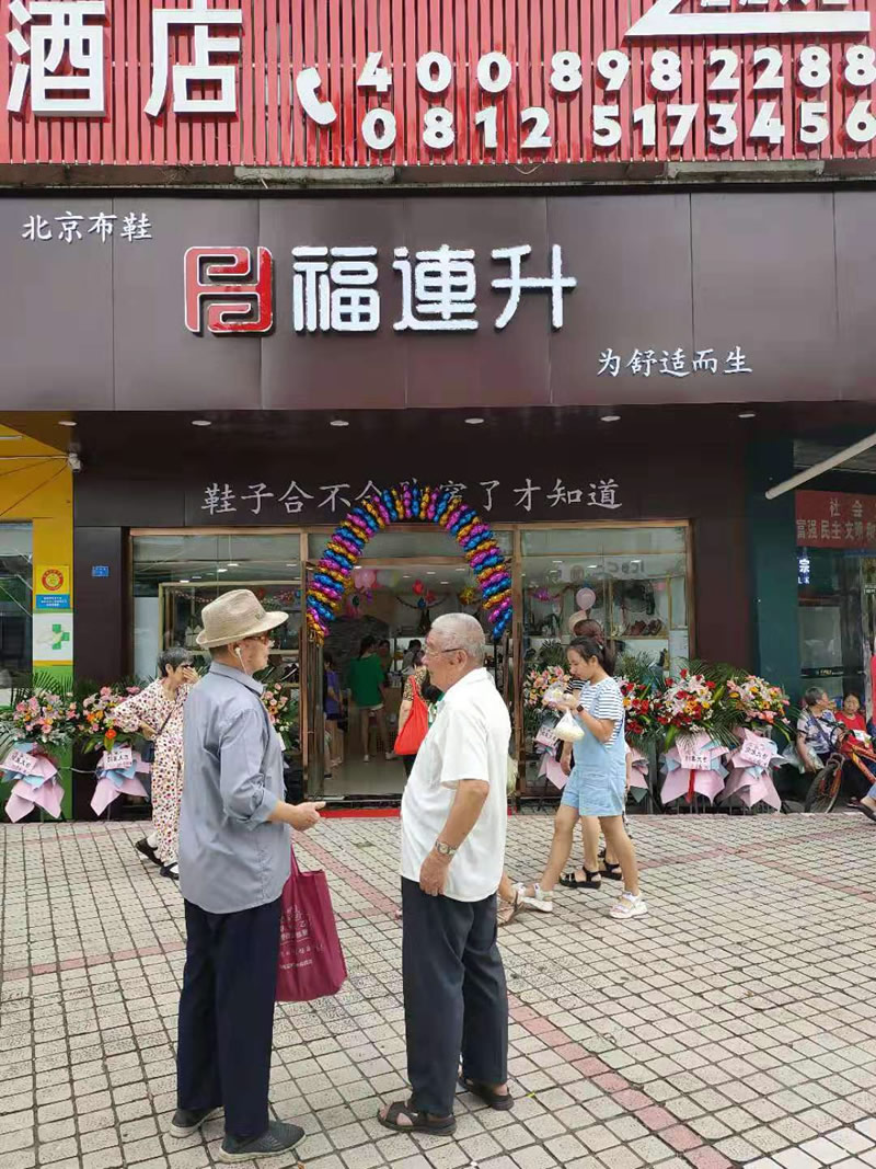 在此,福連升健康休閑中年鞋(原福連升(原福聯升)老北京布鞋)全體員工祝賀:福連升中年鞋四川攀枝花仁和店重裝開業大吉、生意紅火、財源廣進!誠邀各地有志之士加盟合作,共享輝煌!