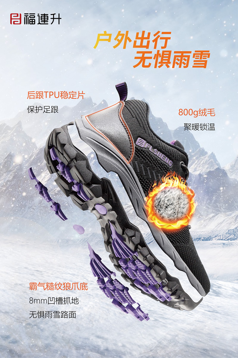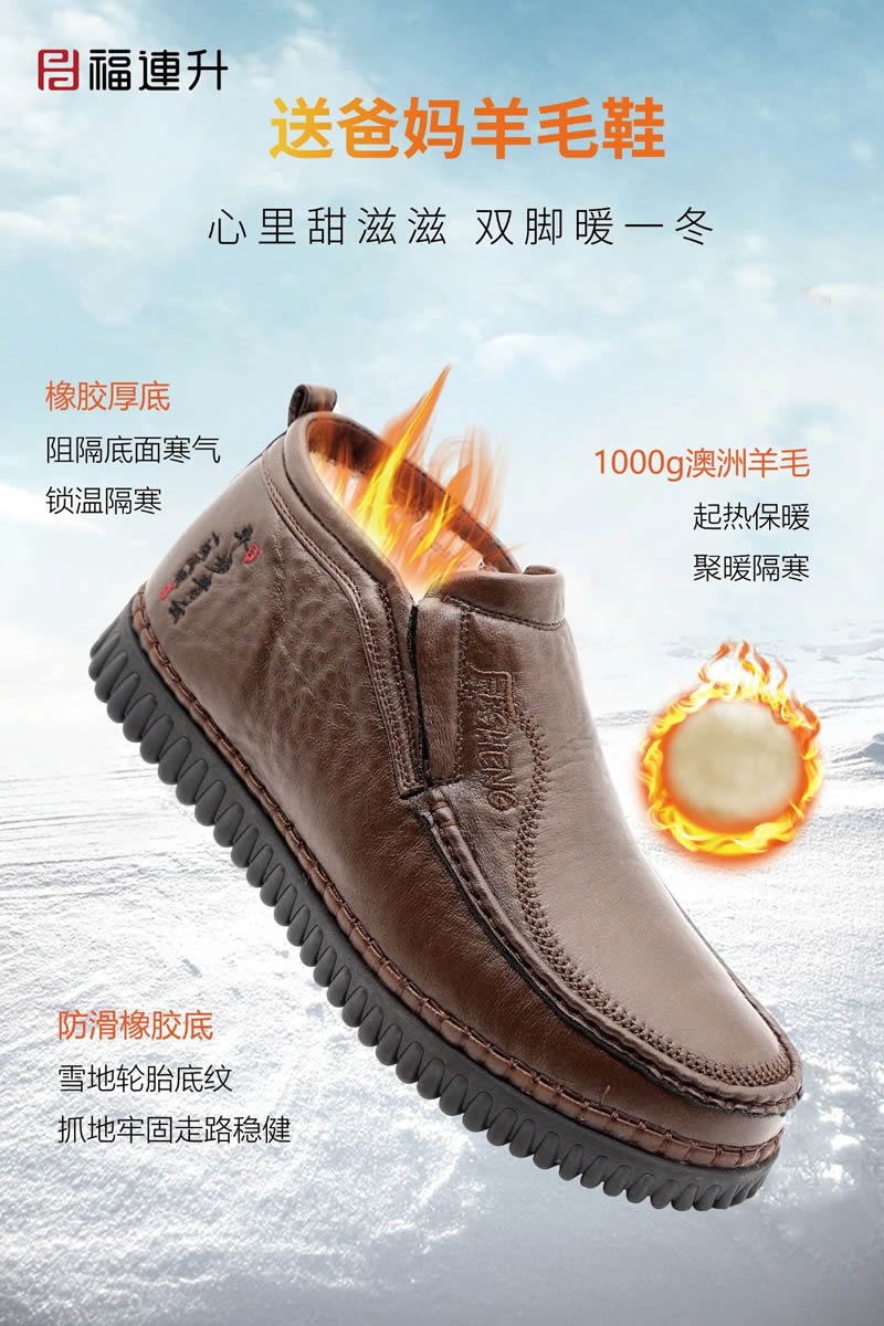 福連升冬季新品打破鞋品科技新思路,專業研發特別推出黑科技摩力磁震鞋、保溫暖冬羊毛鞋、安全生活止滑鞋、無懼污漬防水鞋四大板塊冬款新鞋品。