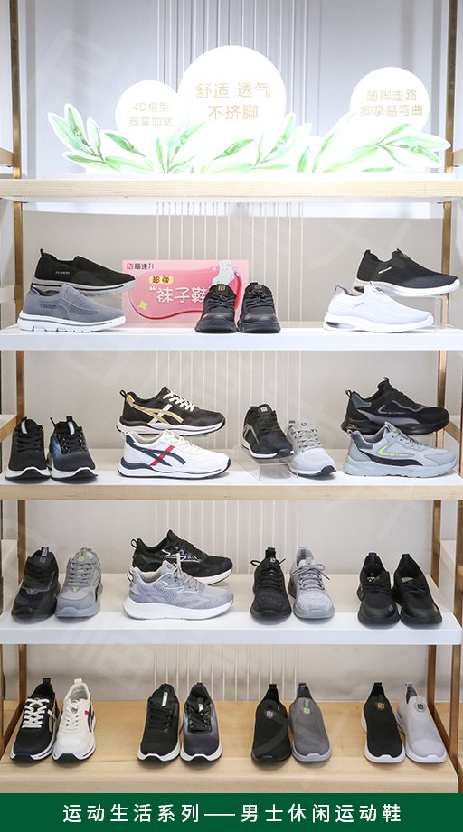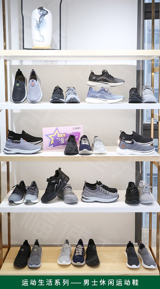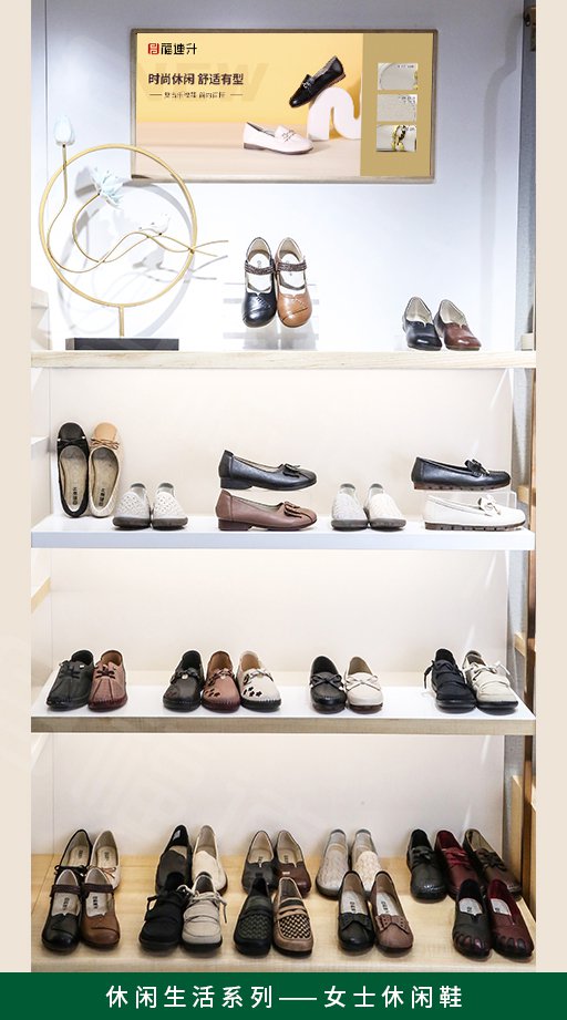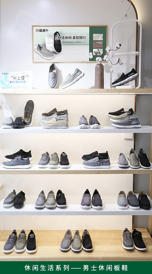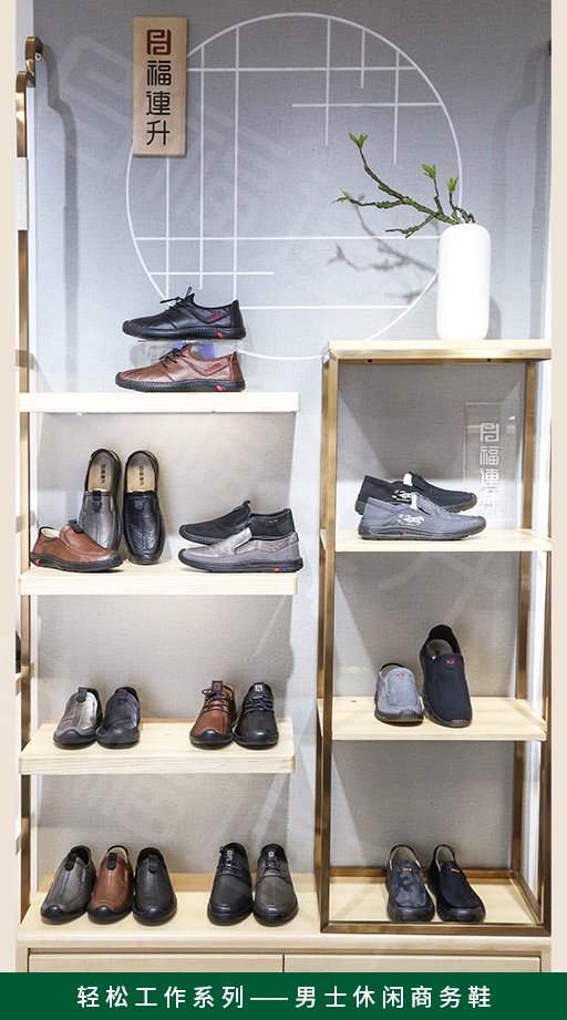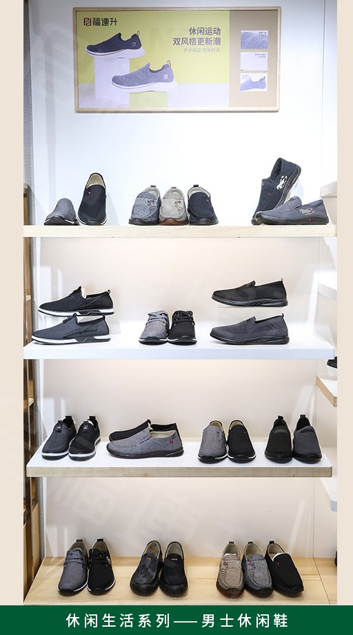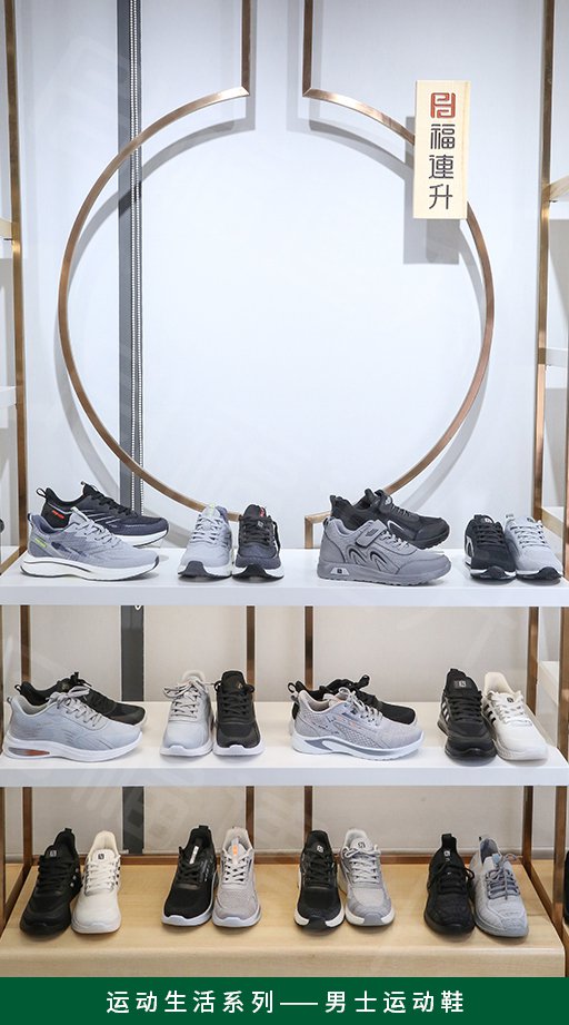 福連升2022春季店面陳列手冊,用多個系列實際產品陳列照片詳細講解了福連升休閑鞋專賣店產品的陳列方法,為廣大加盟商提供陳列參考。